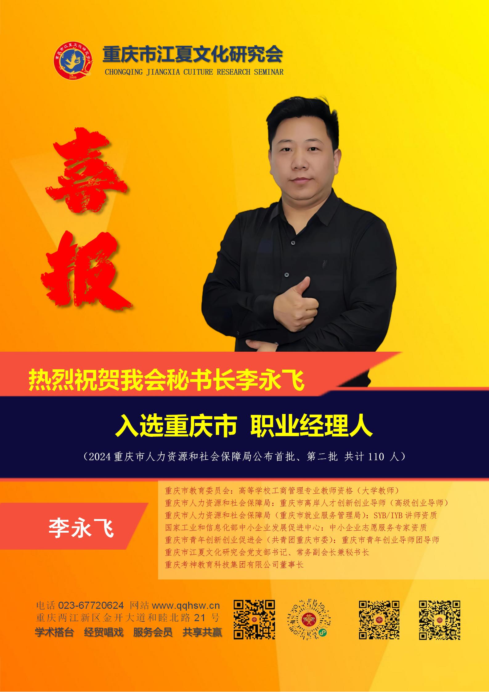重庆市江夏文化研究会党支部书记、常务副会长兼秘书长